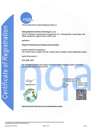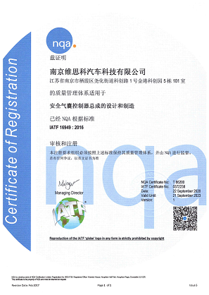 我司經(jīng)上海恩可埃認(rèn)證有限公司(SNQA)認(rèn)證審核,通過了IATF 16949汽車行業(yè)質(zhì)量管理體系認(rèn)證。